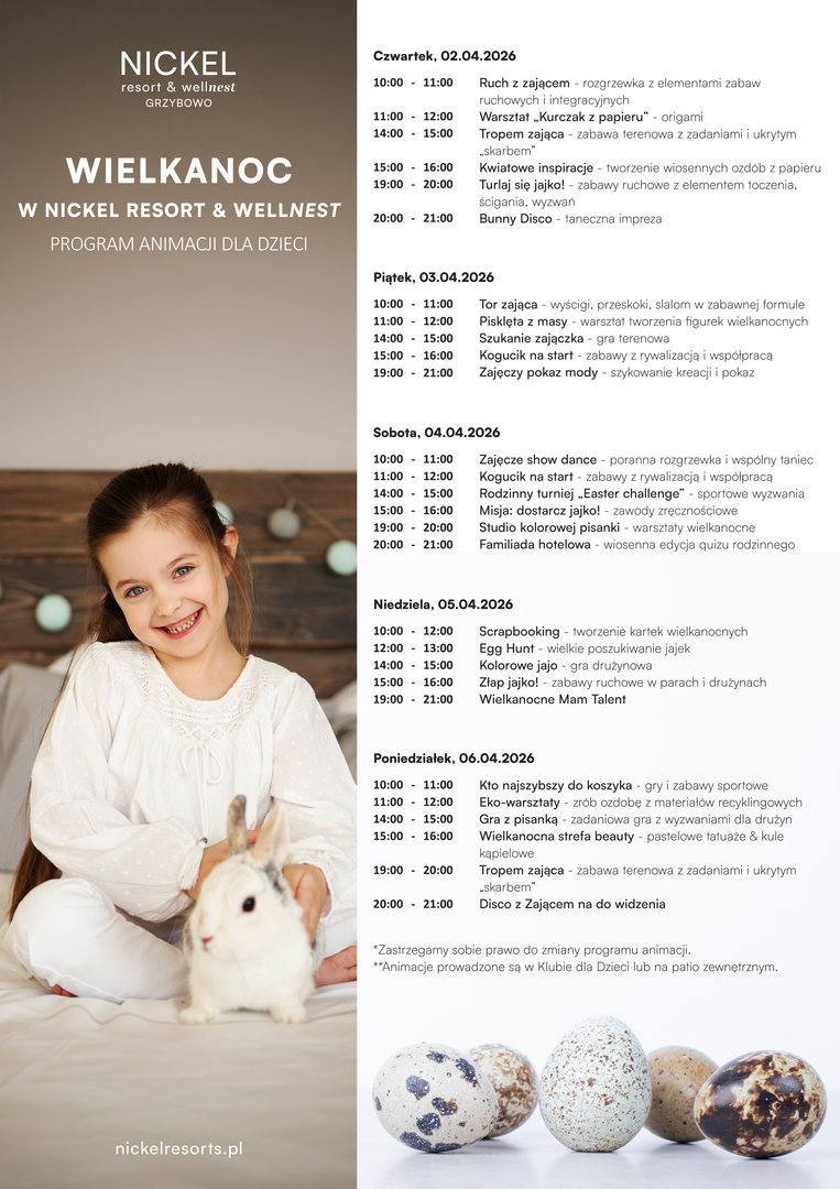 Wielkanoc nad morzem pozwala spojrzeć na święta z innej perspektywy – spokojniejszej, bliższej naturze i bardziej uważnej. W Nickel resort & wellnest świąteczny czas łączy rodzinne tradycje z regeneracją: wspólne posiłki przeplatają się z chwilami relaksu w strefie wellnest, a animacje i zabawy świąteczne dają dzieciom przestrzeń do radości i twórczej aktywności.